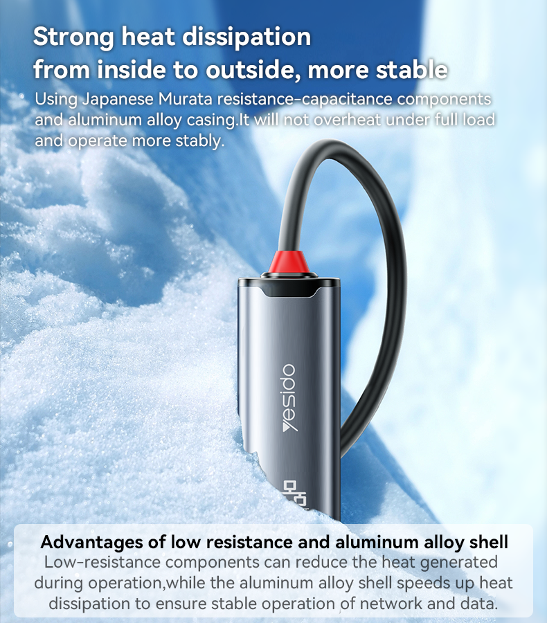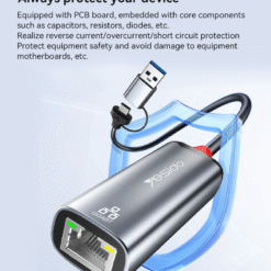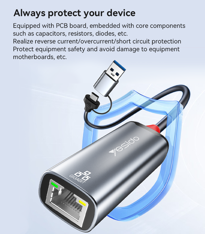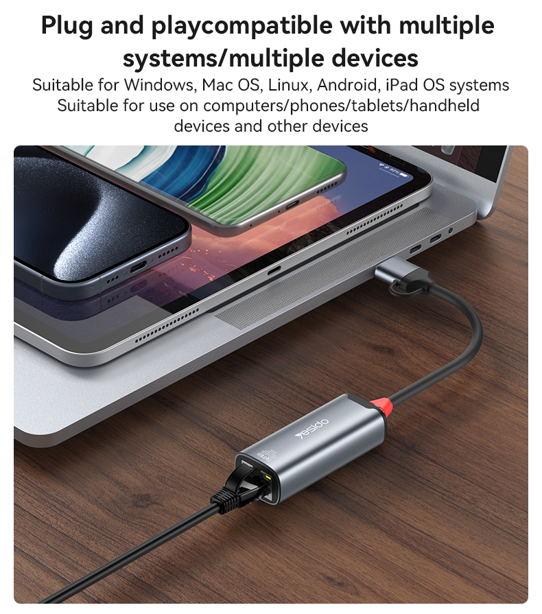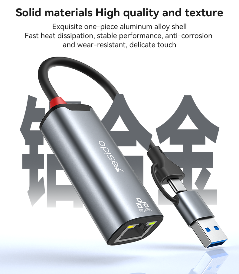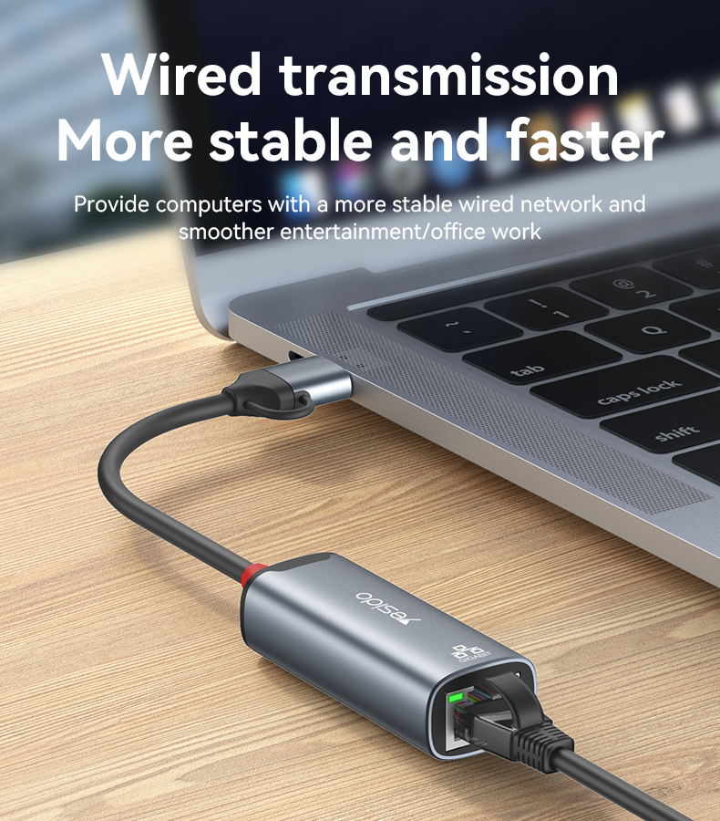 Adaptador USB e Tipo C para Ethernet RJ45 Yesido HB26