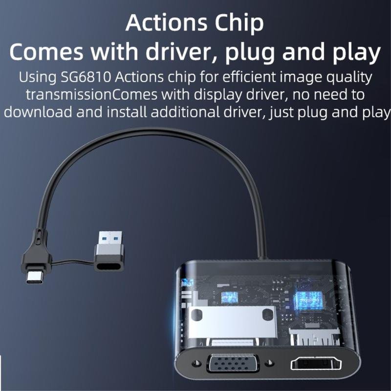 - USB-A/Tipo-C para HDMI ou VGA.