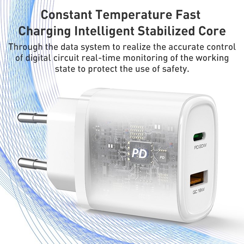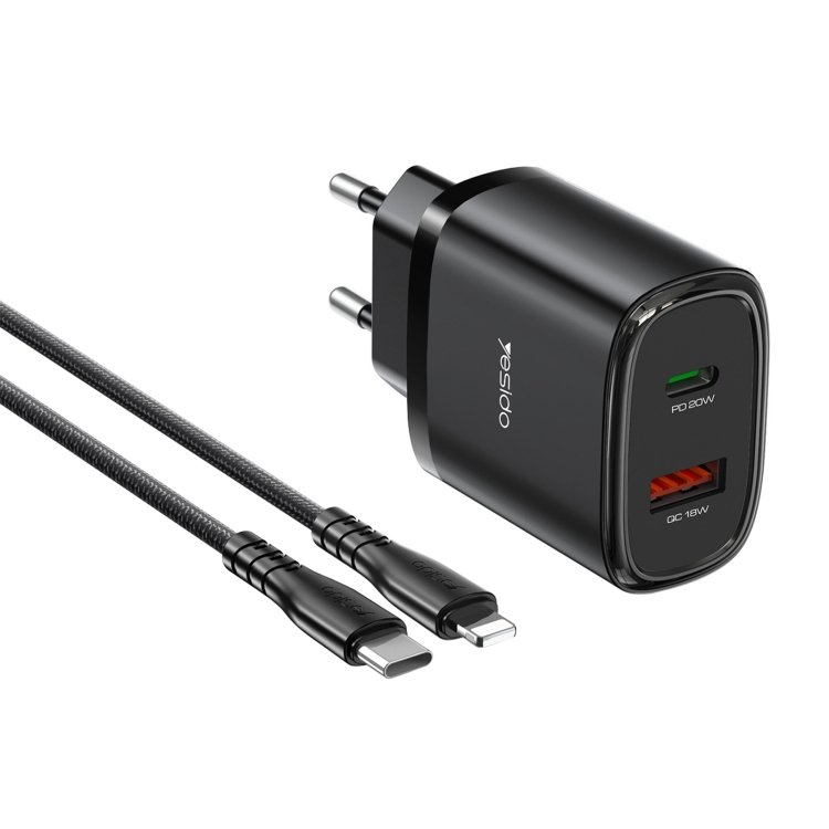 Carregador de carregamento rápido YC47 de 20W com cabo Tipo C p/ Lightining